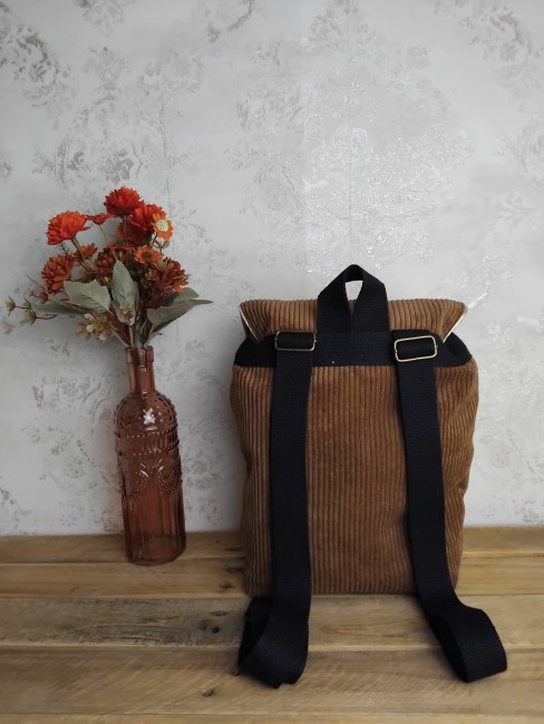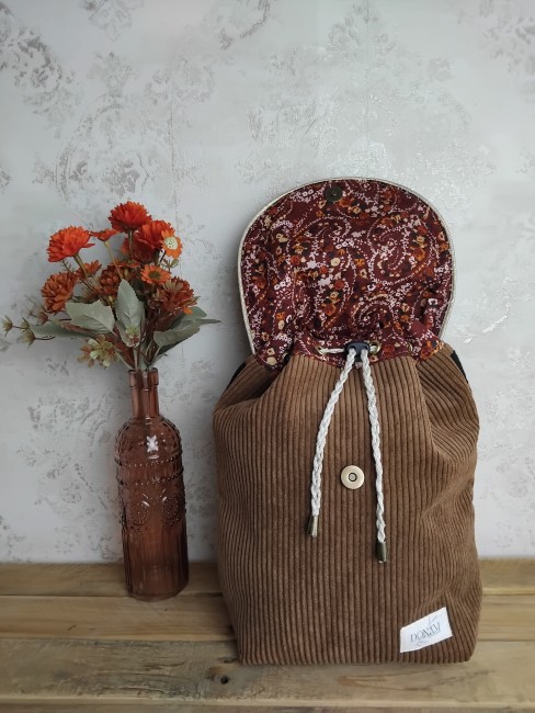 Ce sac à dos est velours, doublé d'un coton à motifs variés et d'un molleton.