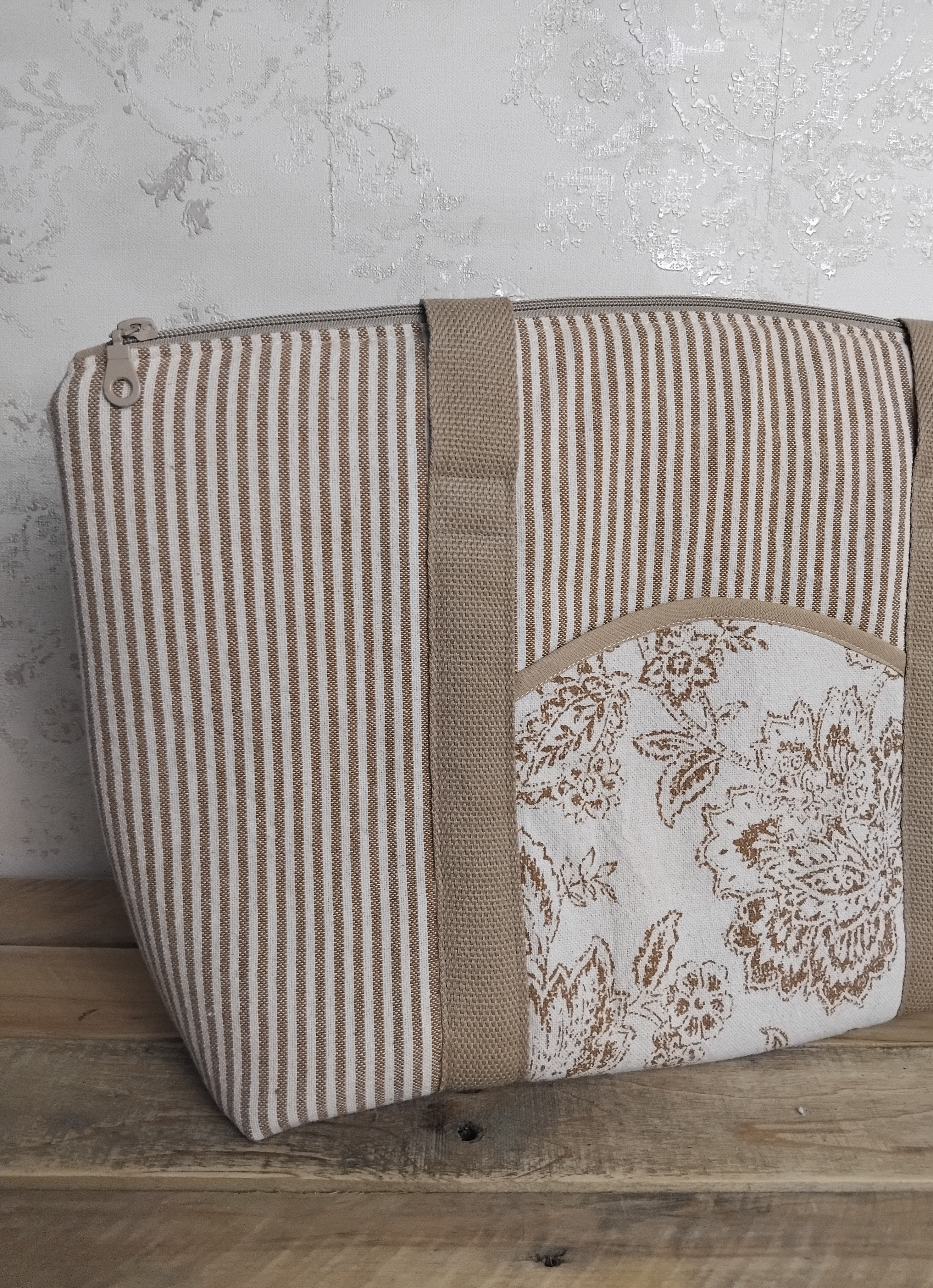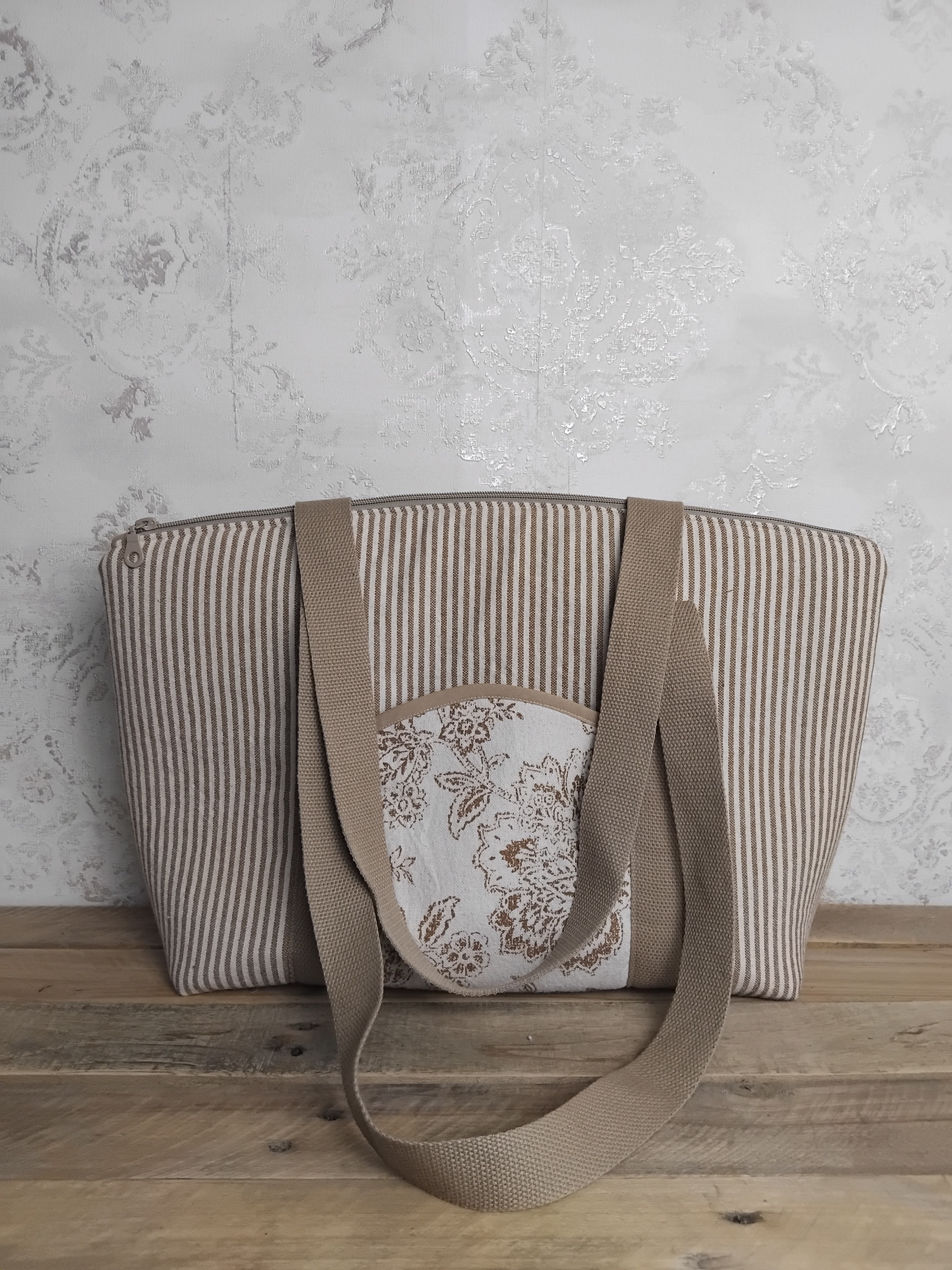 Le sac est en coton tissé doublé d'une cotonade couleur lin.