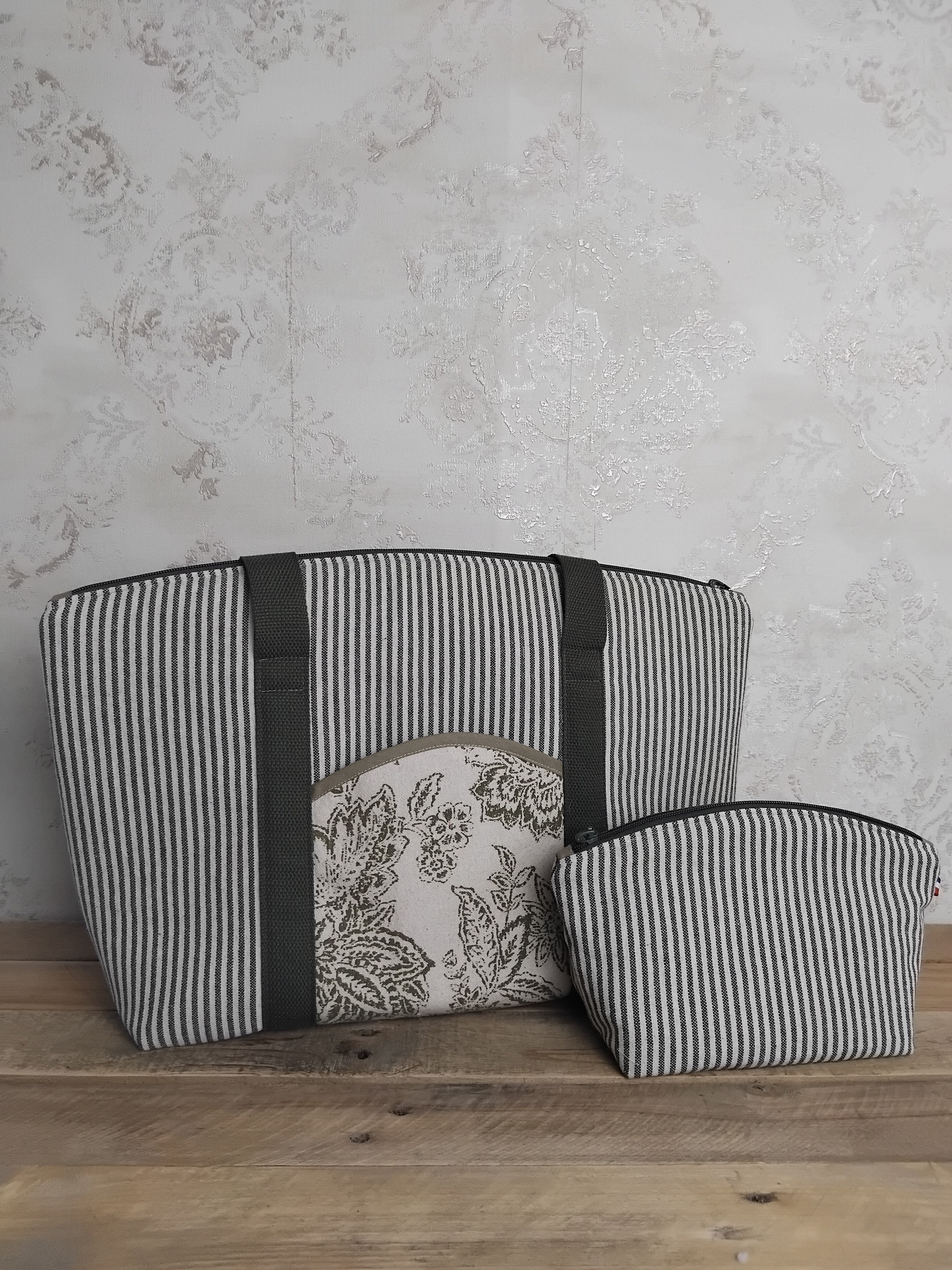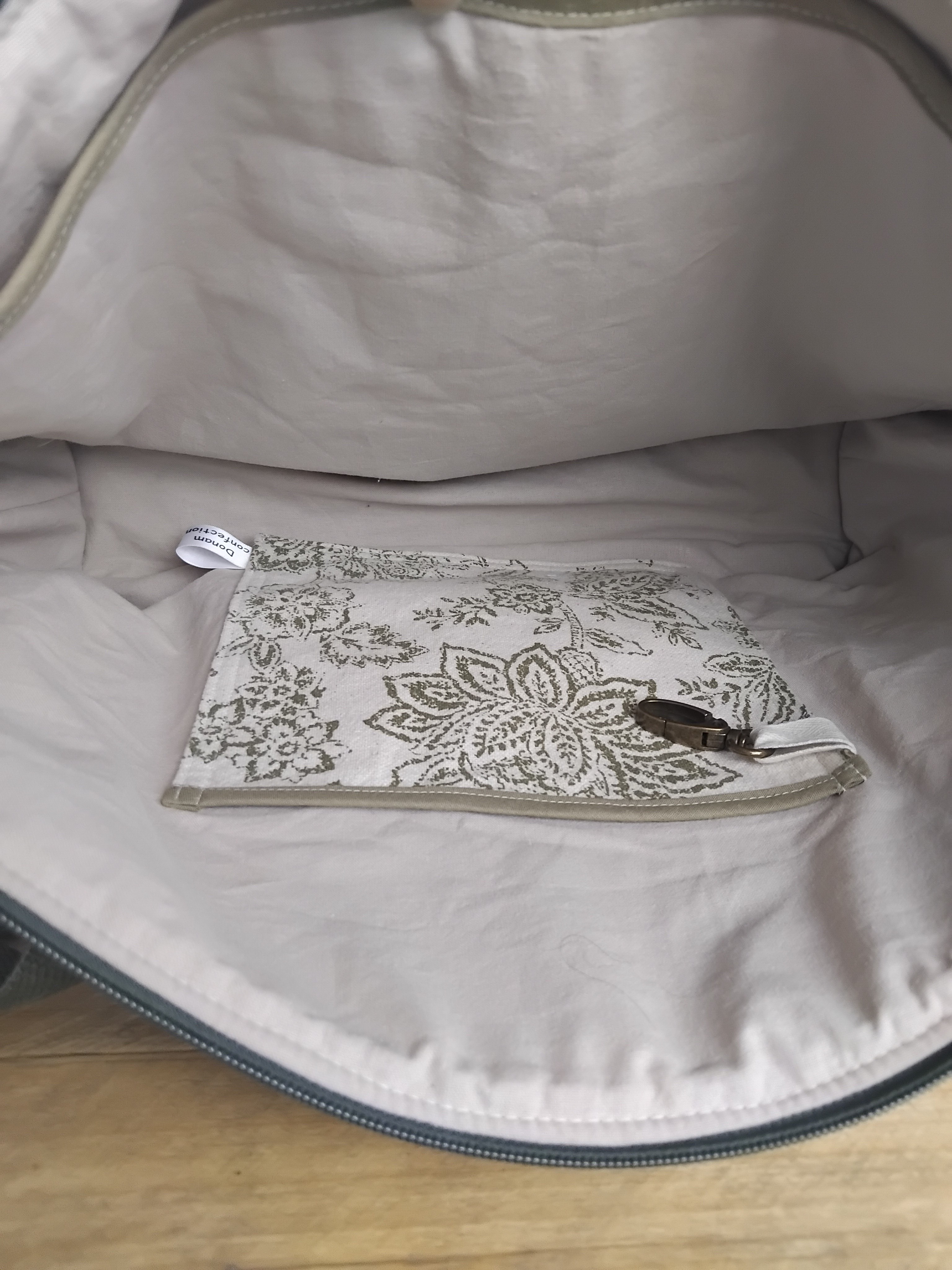 Le sac est en coton tissé doublé d'une cotonade couleur lin.