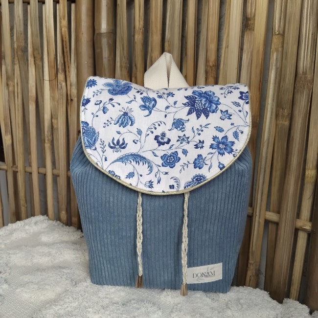 Ce sac à dos est en velours, doublé d'un coton à motifs variés et d'une mousse lui assurant d'un bon maintient.