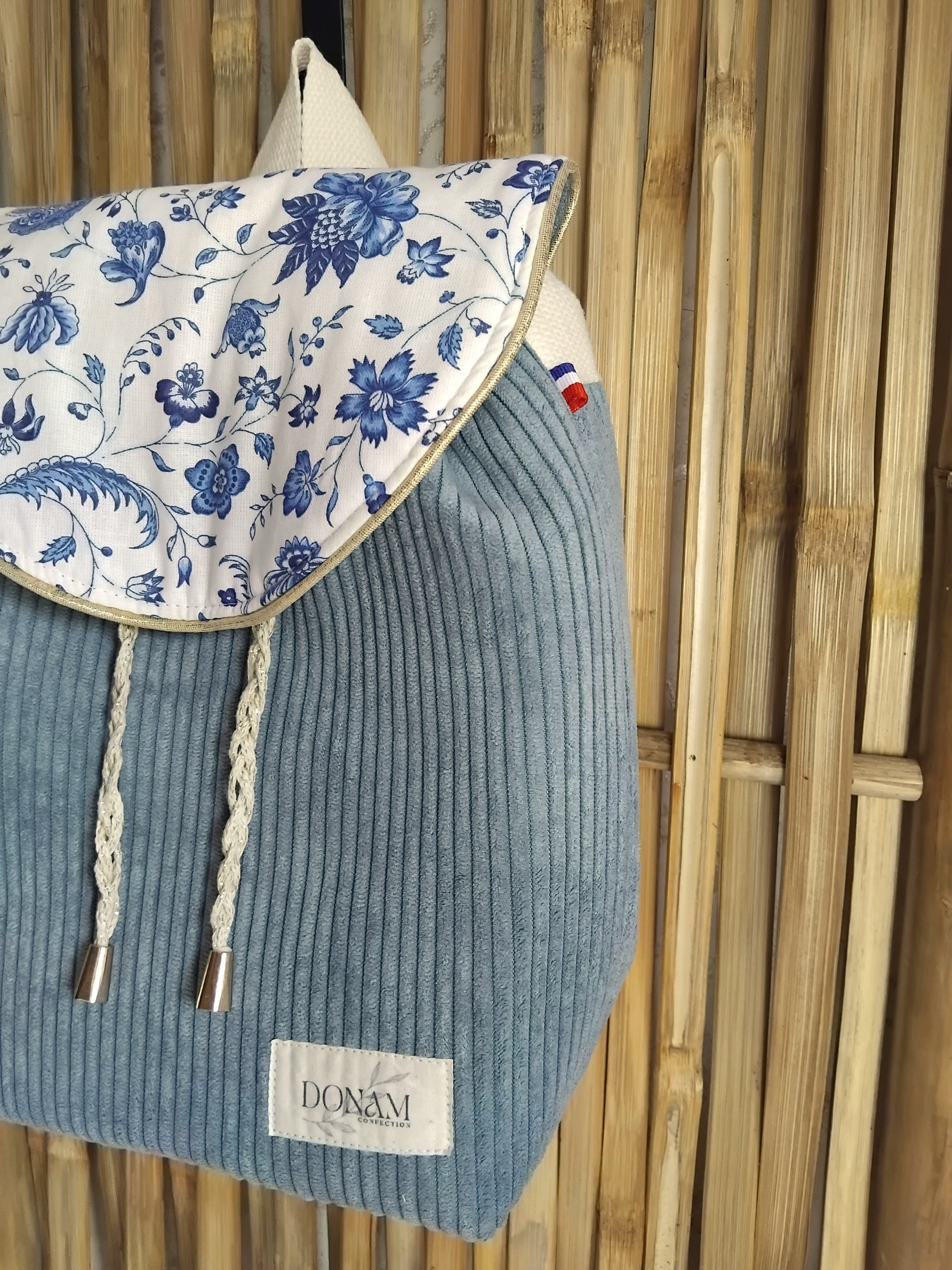 Ce sac à dos est en velours, doublé d'un coton à motifs variés et d'une mousse lui assurant d'un bon maintient.