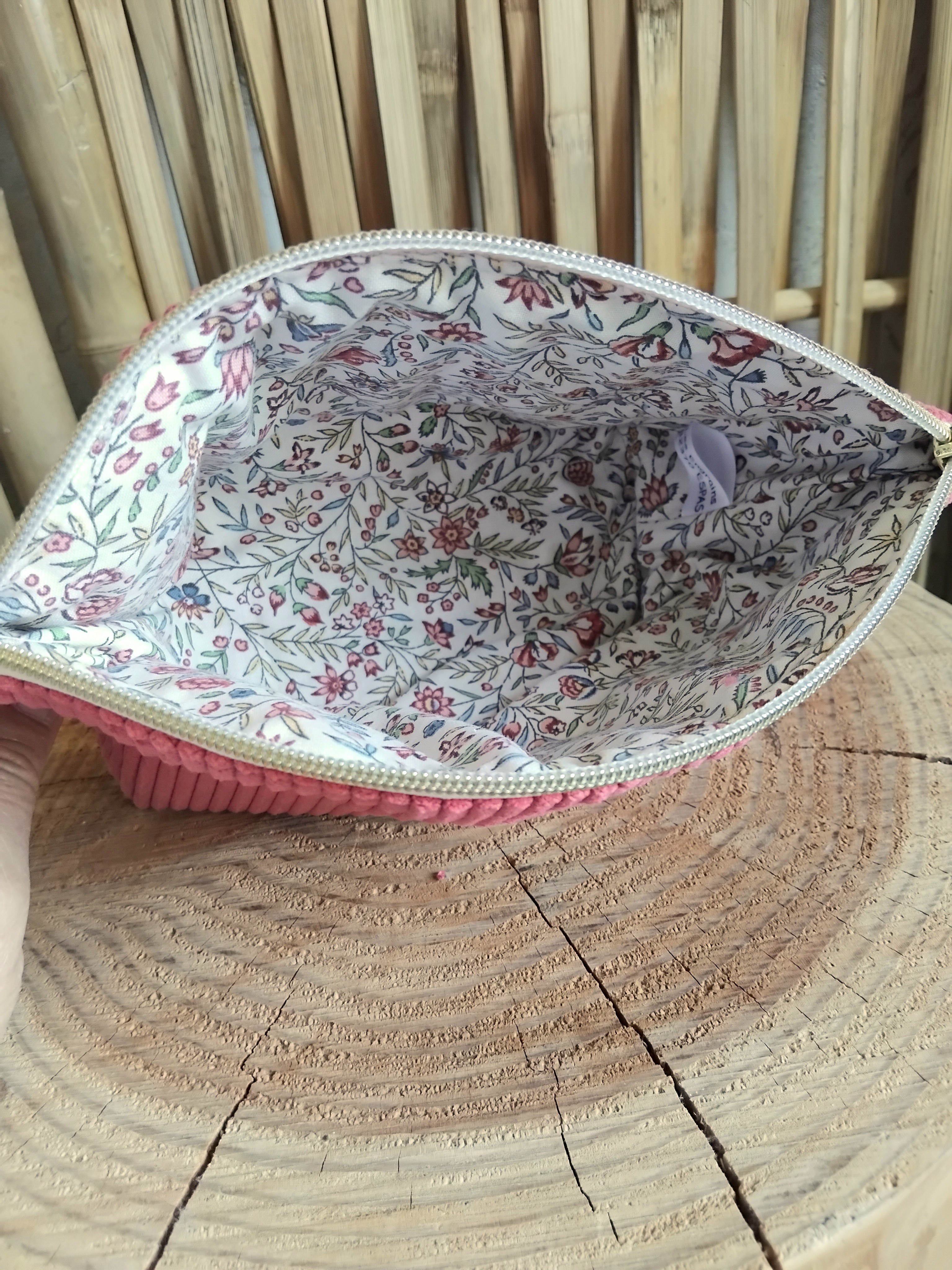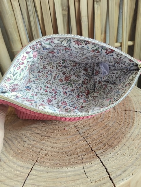 Elle est en velours côtelé, doublée d'une cotonade à motifs variés et d'un molleton.